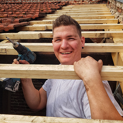 Dicke Holzbalken sind meine Leidenschaft. Es gibt kein Dach, dass ich nicht decken kann.